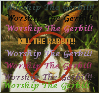 Here you have it. This is where anti-bunny propaganda will be stored. Check back often for new exciting things to add to your pages. To download these images just click on them and then save. When displaying these logos promenently on your page, please make a link to http://www.corg.org/. If you really don't email gerbilgod@corg.org. Remmember displaying this link will help you get into heaven, making your own church will make sure you have pleanty of sex, drugs, and rock n' roll once you are there.
